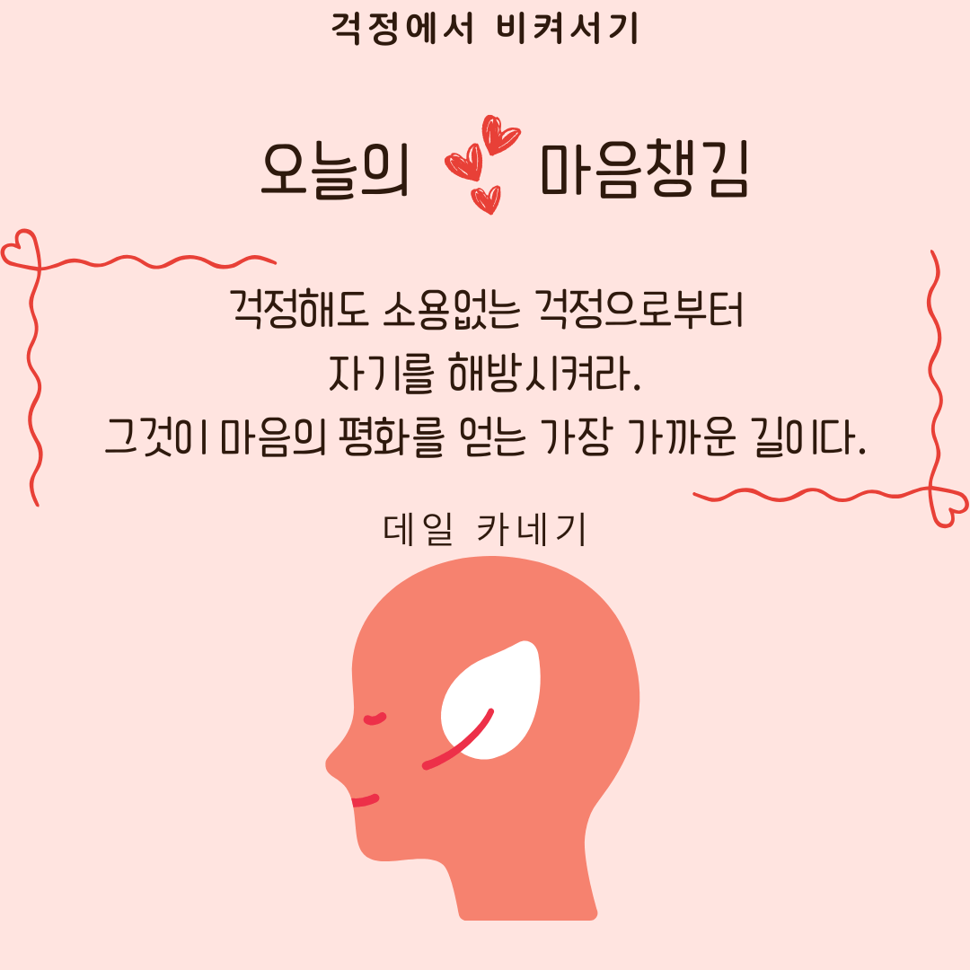 우리의 걱정 중 70퍼센트는 모두 쓸데없는 걱정이라고 한다. 걱정이 걱정을 낳고 다시 또 걱정을 낳는 이 카테고리를 조금씩 끊어나가며, "뭐, 닥치려면 닥쳐보라지" 하는 배짱을 좀 부려보자. 어차피 닥쳐서 걱정해도 늦진 않다.