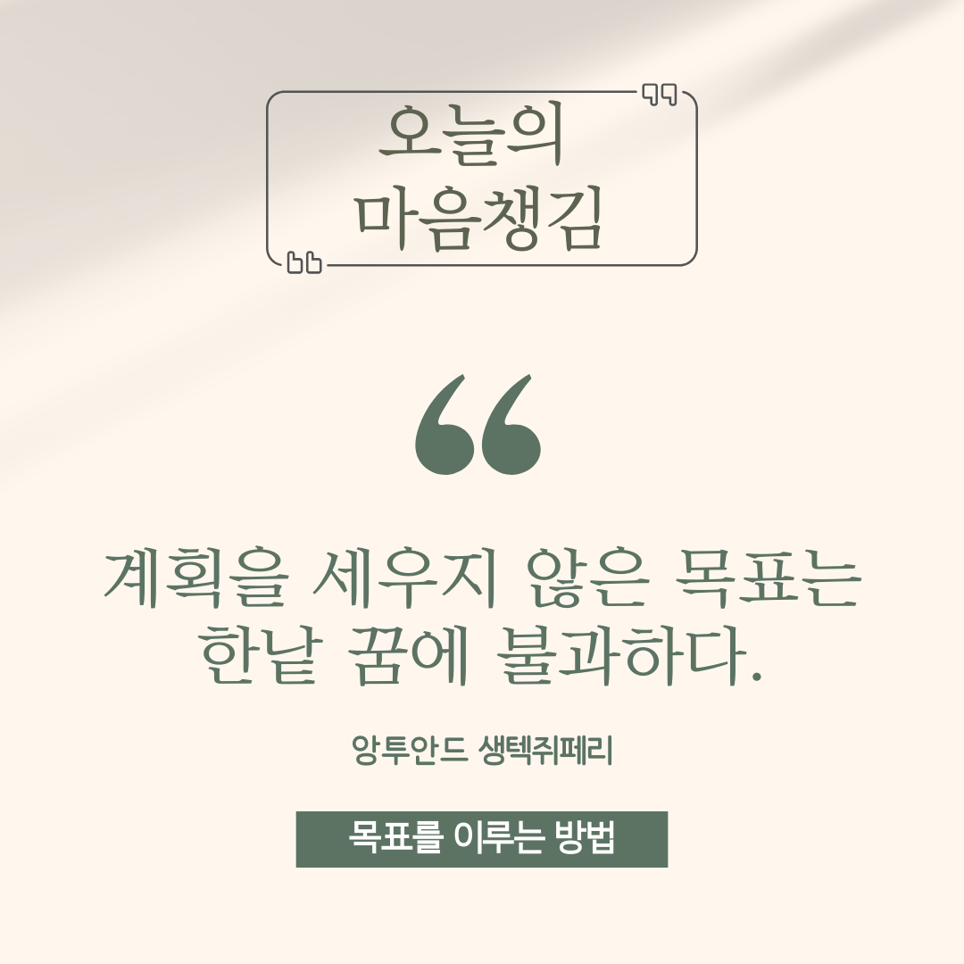 목표가 있으면 계획을 세우고, 계획이 있으면 적어놓고, 적어놓은 것은 읽음으로써 목표를 잊지 않도록 하자. 이러한 과정 속에서 계속 앞으로 나아갈 수 있는 힘을 얻으며 자신을 더 도닥일 수 있다.
