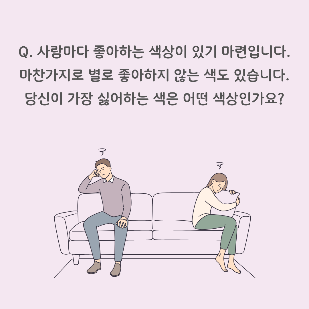당신이 싫어하는 색상 : 사람이 선호하는 색상은 그 사람의 성격, 특히 이성을 바라보는 시각과 많이 연결되어 있다고 합니다. 그렇다면 당신이 싫어하는 색상은 과연 어떤 의미와 상징을 담고 있을까요?